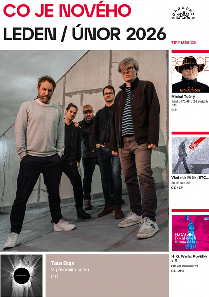Tata BojsV původním sněníNové album Tata Bojs mění sny v realitu Šest let dlouhý sen fanoušků Tata Bojs o jejich novém albu se stává skutečností. Novinka s názvem V původním snění obohatí jejich bohatou diskografii o již jedenáctý dlouhohrající studiový opus, plynule navazující na loňské EP25. Hanspaulská formace kolem zakladatelů Milana Caise a Mardoši přináší už 38 let hudbu nejvyšší kvality a sama sobě nastavuje velmi vysokou laťku, kterou dlouhodobě drží a často i překonává. Na albu V původním snění najdeme celkem jedenáct skladeb, z nichž čtyři vyšly dříve jako singly a následně na EP25 (Bůh má problém, Novej člověk, Slovní, Chybí prázdno). Toto EP kapela vydala u příležitosti svého speciálního vyprodaného koncertu ve Foru Karlín na konci února 2025. Následující rok pak Tata Bojs strávili ve studiích, kde vzniklo dalších sedm nových skladeb. Producentsky za nahrávkou stojí opět Milan Cais a Dušan Neuwerth. Autorsky je album dílem všech členů kapely, o skvělé texty se tradičně postarali Milan Cais a Mardoša. Továrna na sny / Umělá (feat. Sára Vondrášková) / Bůh má problém / Alibistická / Třetí osoba / Novej člověk / Slovní / Holandský kakao (feat. Marek Pistora ) / Mlčení / Chybí prázdno / V původním snění CD papírový digisleeve ![]() SU 6981-1