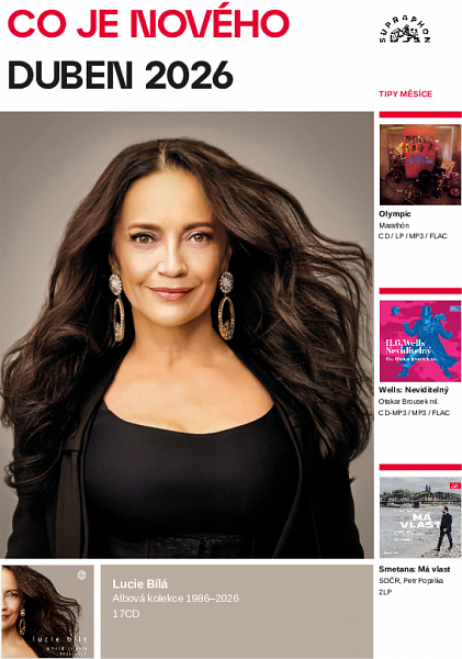 Lucie BíláAlbová kolekce 1986–2026Mimořádná osobnost Lucie Bílé na 17CD albové kolekci Lucie Bílá zažívá rok plný oslav. Připomíná si nejenom významné životní jubileum, ale zároveň i 40 let umělecké kariéry. A je to kariéra více než mimořádná, srovnatelná snad jedině s Karlem Gottem. Lucie Bílá během ní získala celkem 21 Zlatých slavíků, což z ní dělá rekordmanku mezi českými zpěvačkami, ale je také držitelkou řady dalších ocenění za své nahrávky, koncerty a mediální vystupování. Při této příležitosti vychází speciální limitovaný box 17 CD, tedy všech šestnácti studiových sólových alb, doplněný o společné album duetů s Karlem Gottem z roku 1997. A právě toto je událost, kdy se vedle sebe objeví průlomové album Missariel (1992), album světových hitů Hvězdy jako hvězdy (1998), dnes už legendární multiplatinové první vánoční album Bílé Vánoce (2010), komorní Recitál (2014) a také poslední studiové album Obyčejná holka (2025). CD1 Lucie Bílá (1986) 17CD kašírovaný box OlympicMarathónReedice přelomového alba z roku 1978 + 9 CD bonusů Olympic tehdy nástrojově dozbrojil a chystal se na příští skvělé projekty. Toto album je do jisté míry ještě hledačské, ale příchod definitivního baskytaristy Milana Brouma naznačil, že po popovém úkroku stranou se kapela hodlá naplno vrátit do kategorie rocku. V devíti občas dlouhostopážních tracích najdete dvě skladby Petra Hejduka (Mráz, Tak, teto, tady je to), zbytek muziky tradičně obstaral Petr Janda. Přinejmenším tři písně možno označit za hity, když Taky jsem se narodil bos a Tak jedem dál, oba s výbornými texty Zdeňka Borovce, plus Černá kronika obstály v rozhlasovém vysílání, resp. jako součást koncertů. Broumova basa je silným hnacím agregátem třeba také v titulní skladbě, jejíž podivuhodný osud přibližuje Petr Janda v bookletu. Stejně pozoruhodný je i příběh fotografií Alana Pajera, jejichž originály se staly obětí „pochartistické“ čistky StB v jeho ateliéru. Obal byl proto pečlivě rekonstruován a doplněn obsáhlým doprovodným textem Oldřicha Zámostného. Ten také – společně s P. Jandou a M. Broumem – vybral devět CD bonusů. Krom s albem časově souvisejících singlů (včetně dalšího hitu Ty slzy dávno vpila tráva) mezi nimi najdete ukázku z anglicky zpívaného LP Overhead, několik dosud nevydaných live záznamů z let 1977–1980 i legendární instrumentálku Sprcha, jíž Broum zvuk Olympiku vítaně osvěžil. Zvukově remasterovaná a historicky cenná muzika před rýsující se artrockovou trilogií. Jako kluci začli jsme hrát / Mráz / Černá kronika / Tak teto, tady je to / Marathón / Taky jsem se narodil bos / Nech to být / Tak jedem dál CD papírový digipack / LP 180 g Herbert George Wells: NeviditelnýOtakar Brousek ml.Padouch, který se stal popkulturní legendou H. G. Wells je považovaný za zakladatele moderní science fiction. A zcela po právu, neboť jeho romány jako Válka světů nebo Stroj času se dočkaly řady filmových, rozhlasových i komiksových adaptací. Platí to i pro román Neviditelný. Pracuje s populární zápletkou cizince, který přicestuje do maloměsta a obrátí jej vzhůru nohama. Na tomto základu však Wells postavil originální krimi příběh se sci-fi prvky. Z tajemného muže totiž není vidět ani kousek těla. Je zachumlaný do kabátu, skrytý za kloboukem a tmavými brýlemi a všude, kde by mohl vykukovat kousek jeho kůže, je omotaný obvazy. Tento neviditelný návštěvník, geniální vědec, jehož ovšem pokusy posunout hranice vědy zbavily lidského vzhledu, se snaží věci napravit, a s nikým, kdo mu bude stát v cestě, se nehodlá mazat, a to i za cenu porušení zákona či dokonce násilí. Postava Neviditelného si v průběhu 20. století získala takovou popularitu, že překročila hranice románu a vstoupila do popkultury. Stal se výraznou postavou (ať už kladnou či zápornou) desítek filmů a seriálů. Tím se zařadil po bok Draculy, Frankensteinova monstra nebo Sherlocka Holmese, podobně populárních a vytěžovaných postav. Audiokniha Neviditelný přináší příběh geniálního a prokletého vědce v novém načtení Otakarem Brouskem ml., který dokázal skvěle podchytit jak dramatickou rovinu románu, tak Wellsovo odlehčené vypravěčství s příměsí typického britského humoru. Neviditelný / Příchod podivného muže / První dojmy pana Teddyho Henfreyho / Tisíc a jedna láhev / Pan Cuss navštíví cizince / Loupež na faře / Nábytek, který se zbláznil / Odhalení / Cestou / Pan Tomáš Marvel / Pan Marvel navštíví Iping / V Ekvipáži / Neviditelný ztrácí rozvahu / Pan Marvel uvažuje o rezignaci / V Port Stowu / Muž, který utíkal / V hospodě U veselé jedenáctky / Návštěvník doktora Kempa / Neviditelný spí / Jisté základní principy / V domě na Great Portland Street / Na Oxford Street / V obchodním domě / V Drury Lane / Plán, který selhal / Honba na Neviditelného / Hintondeanská vražda / Obléhání Kempova domu / Štvaný lovec / Epilog Celkový čas: 7 hod. 4 min. CD-MP3 papírový digipack Sidonie Gabrielle Colette: KočkaMartina PreissováJak žít ve trojici, když dva z trojice se mají raději Colette (1873–1954) byla významná francouzská spisovatelka, nositelka řady literárních řádů a autorka mnoha světově proslulých románů. Kniha Kočka vypráví nesmírně sugestivně a věrohodně o vztahu dvou mladých lidí, kteří se milují, ale jeden z nich, muž a posléze manžel, ještě více než svou ženu miluje svou kočičku, kterou si pořídil jako malé koťátko. Kočka mu na rozdíl od manželky naprosto rozumí, reaguje na každý jeho pohyb, zatímco jeho žena má svá přání a svou představu o tom, jak bude jejich společný život